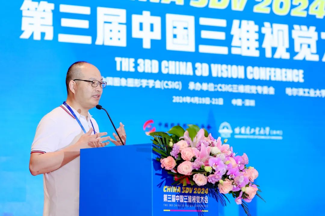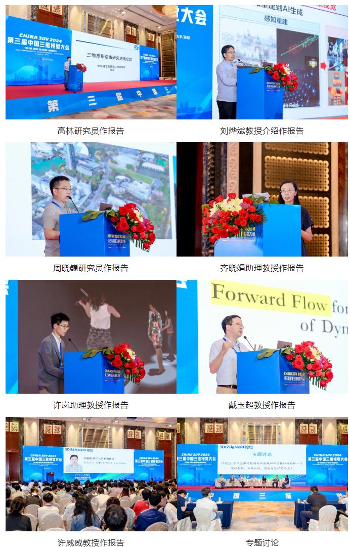 4月21日下午13:30,哈尔滨工业大学张盛平教授、中科院计算所高林研究员主持了3DGS-NeRF论坛,高林研究员作了3DGS-NeRF年度进展报告。清华大学刘烨斌教授、浙江大学周晓巍研究员、香港大学齐晓娟助理教授、上海科技大学许岚助理教授、西北工业大学戴玉超教授、浙江大学许威威教授分别作了题为“3D高斯动态重建与生成”、“大规模动态场景的重建与渲染”、“Learning to Reconstruct, Understand, and Synthesize the 3D World”、“神经渲染和体积视频的一些思考”、“3D Geometry-aware Deformable Gaussian Splatting for Dynamic View Synthesis”、“三维内容的神经隐式表达构建技术探讨”的报告。