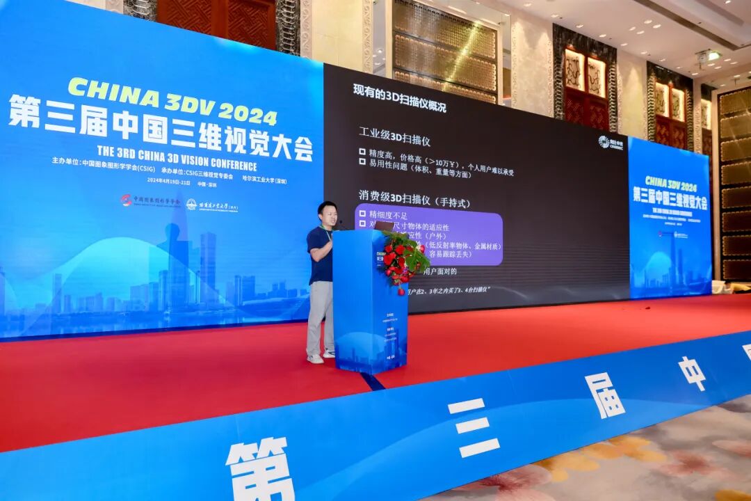 4月21日上午11:25,合作商代表分别介绍了各自企业的情况以及3DV技术在工业界落地应用的进展,奥比中光三维重建组负责人徐玉华、华为主任工程师冯文森分别作了题为”从大范围深度感知到0.02mm精度3D扫描“、”华为三维视觉技术挑战介绍“的报告。
